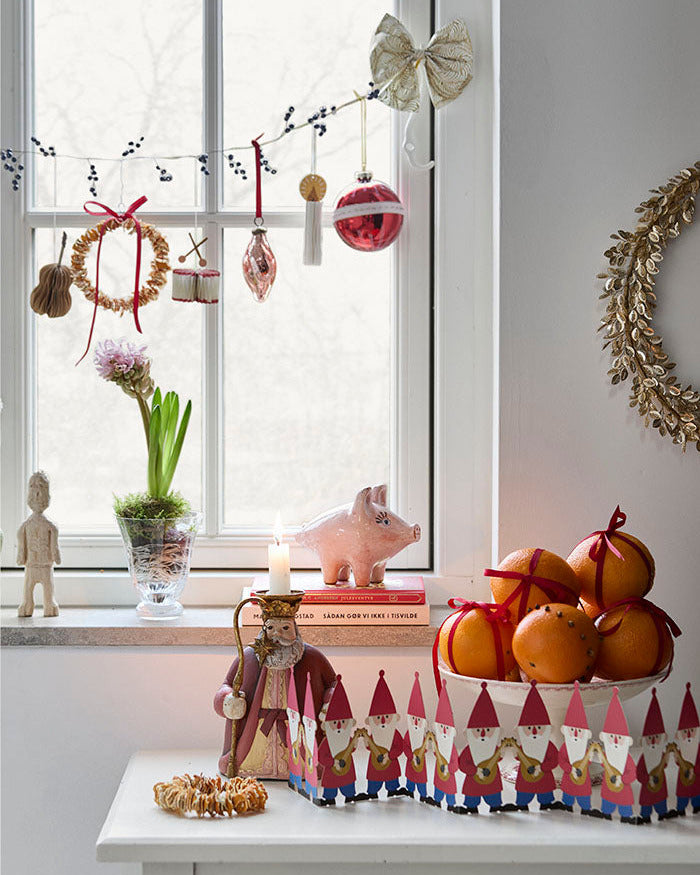 Skab hyggelig stemning på bordet, hylden eller vindueskarmen med de dekorative papirguirlander. Serien består af to varianter – én med små nisser og én med fine grantæer – begge med smukke detaljer og et charmerende, vinterligt udtryk.