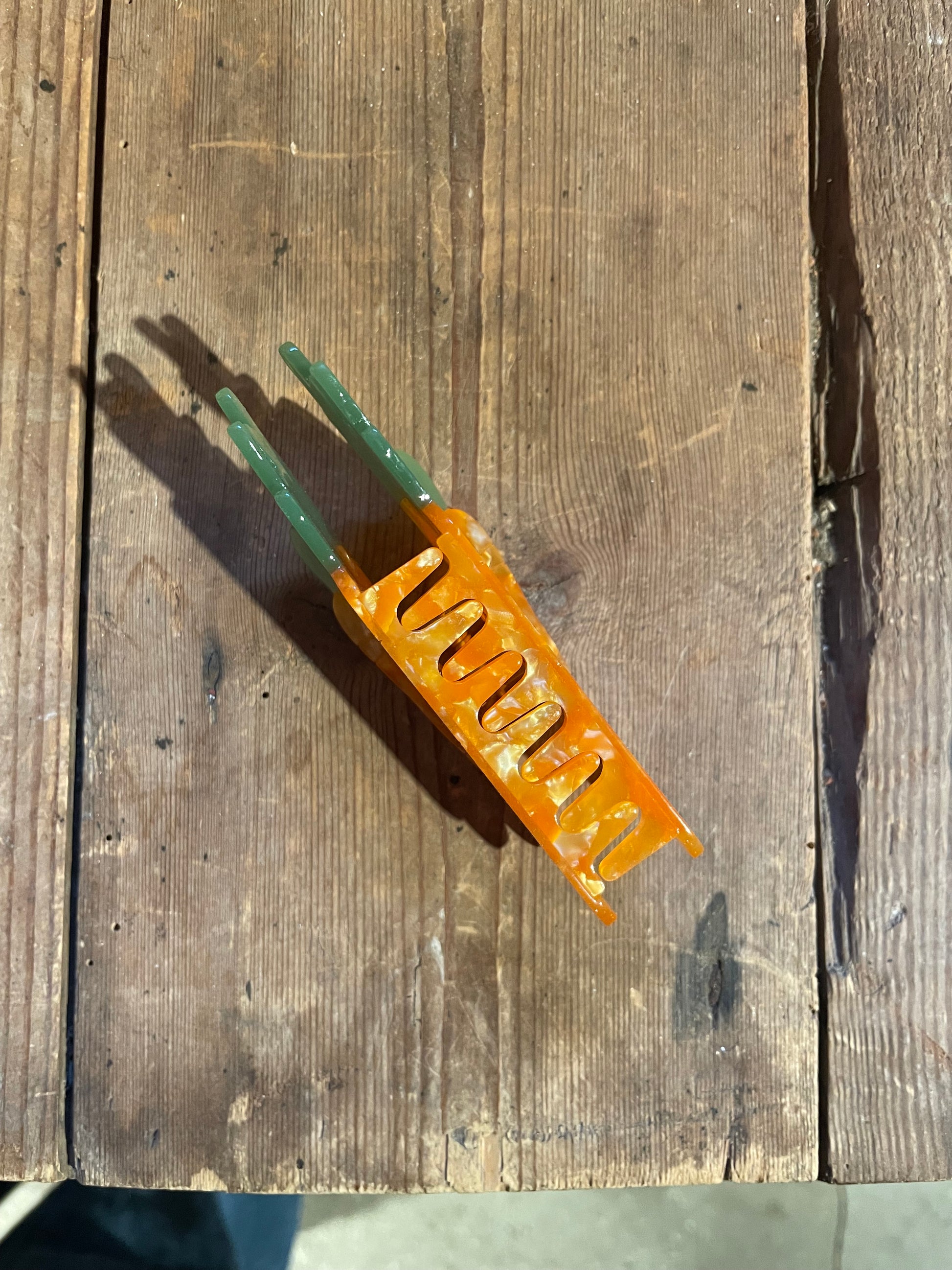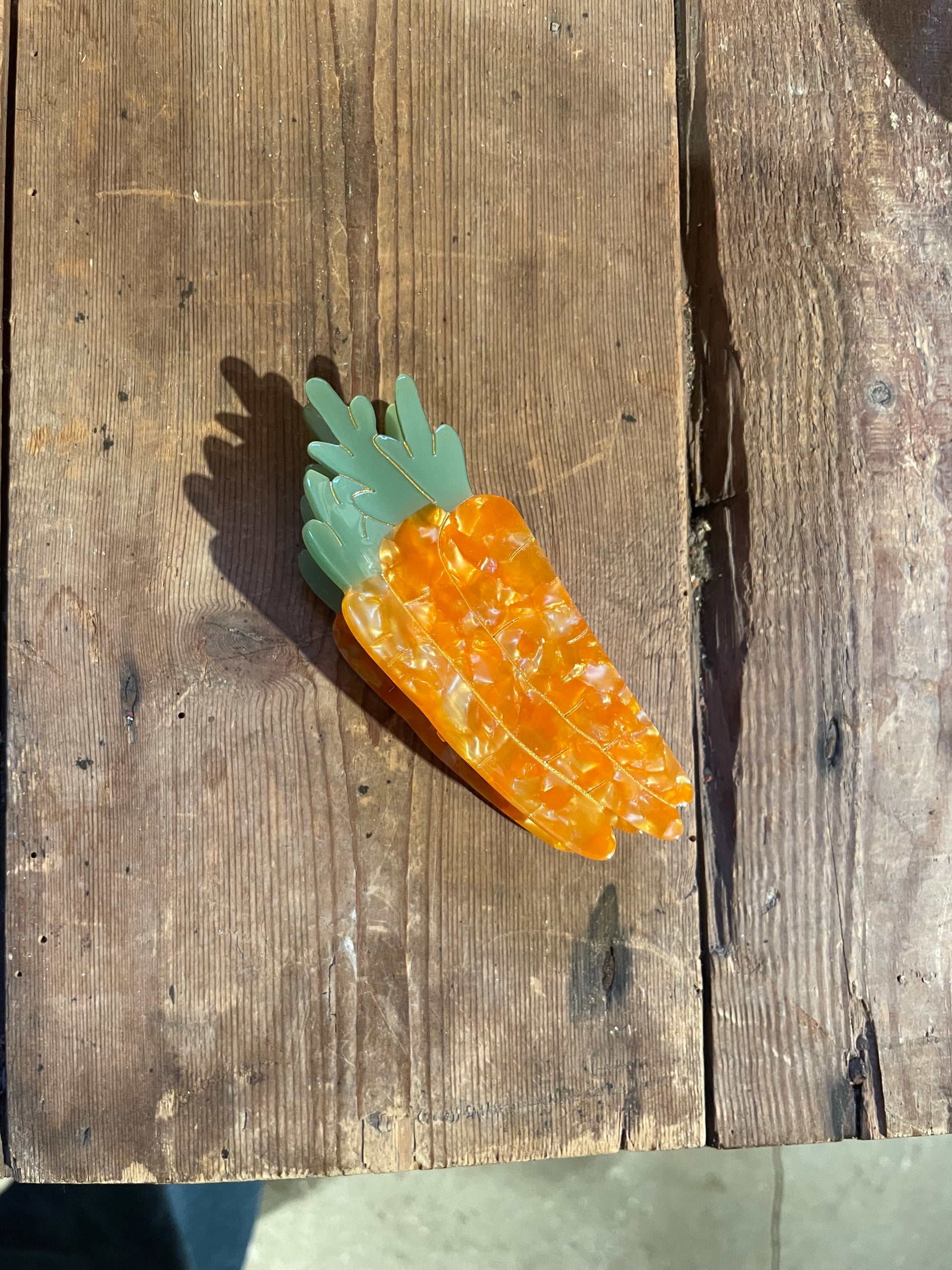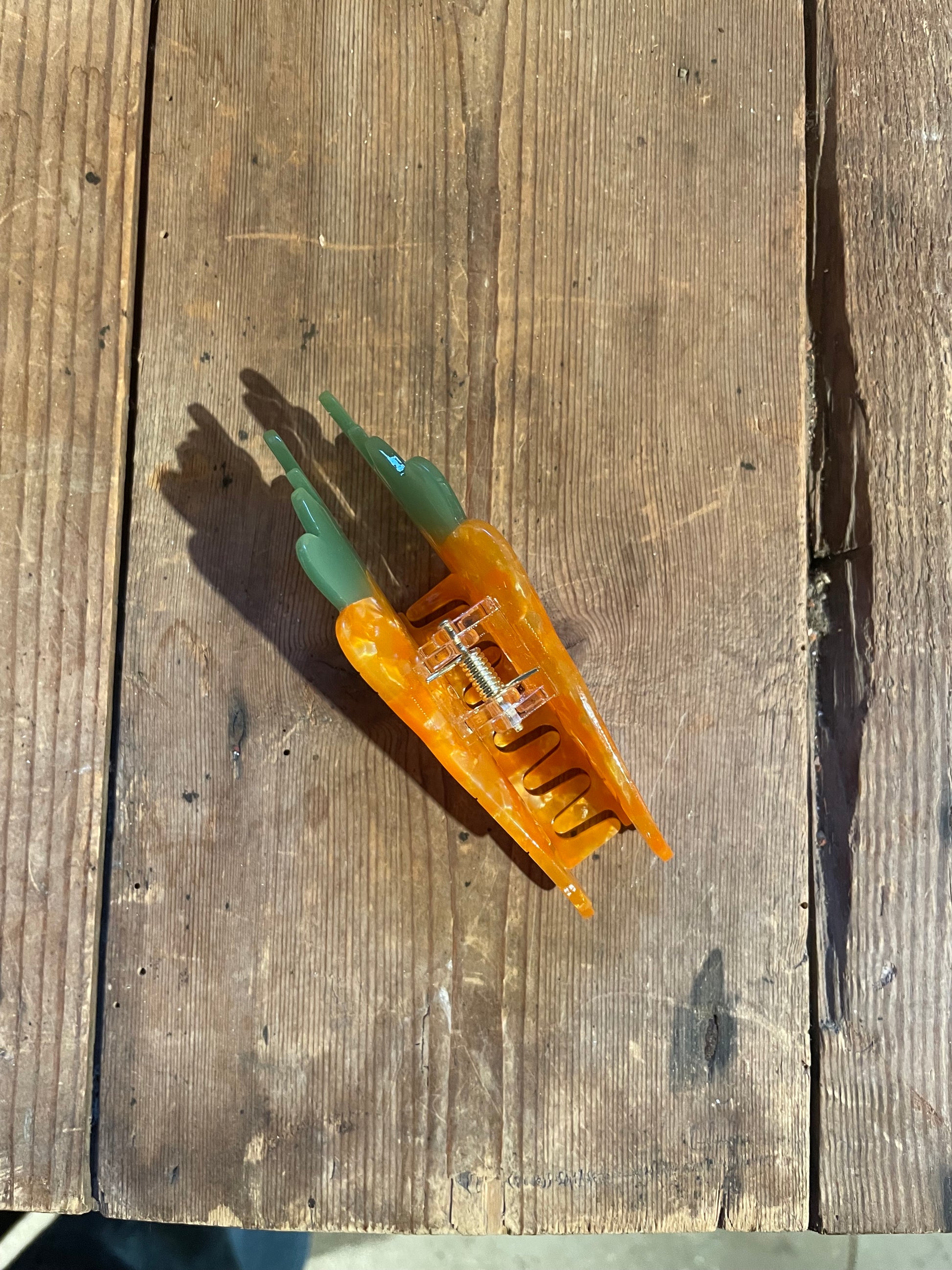 Sprød, farverig og klar til at sætte tænderne i – eller, nå ja, i håret! Denne hårklemme formet som en gulerod er både sjov og stilfuld. Med sine fine detaljer og stærke greb holder den styr på alt fra rodede knolde til glatte lokker – og giver frisuren et frisk knas af personlighed.