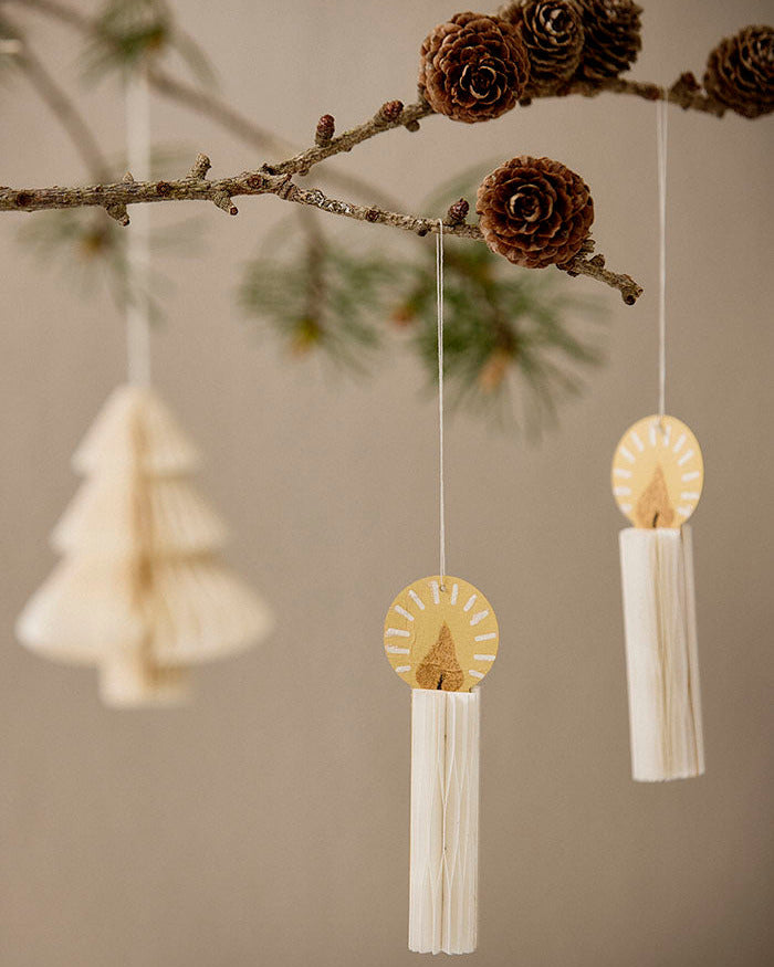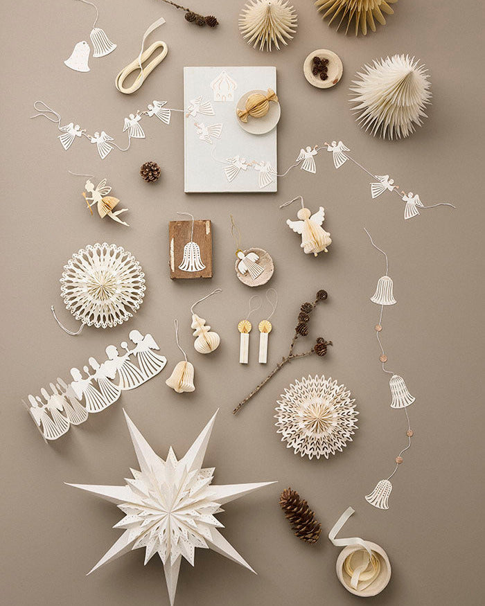 Skab varm og poetisk julestemning med disse elegante honeycomb-lys i cremefarvet papir. Lysene folder sig smukt ud i bløde, lagdelte former, der fanger lyset og giver en let og skulpturel effekt. Når sæsonen er slut, kan de foldes sammen igen – lige til at lægge tilbage i æsken og gemme til næste år.
