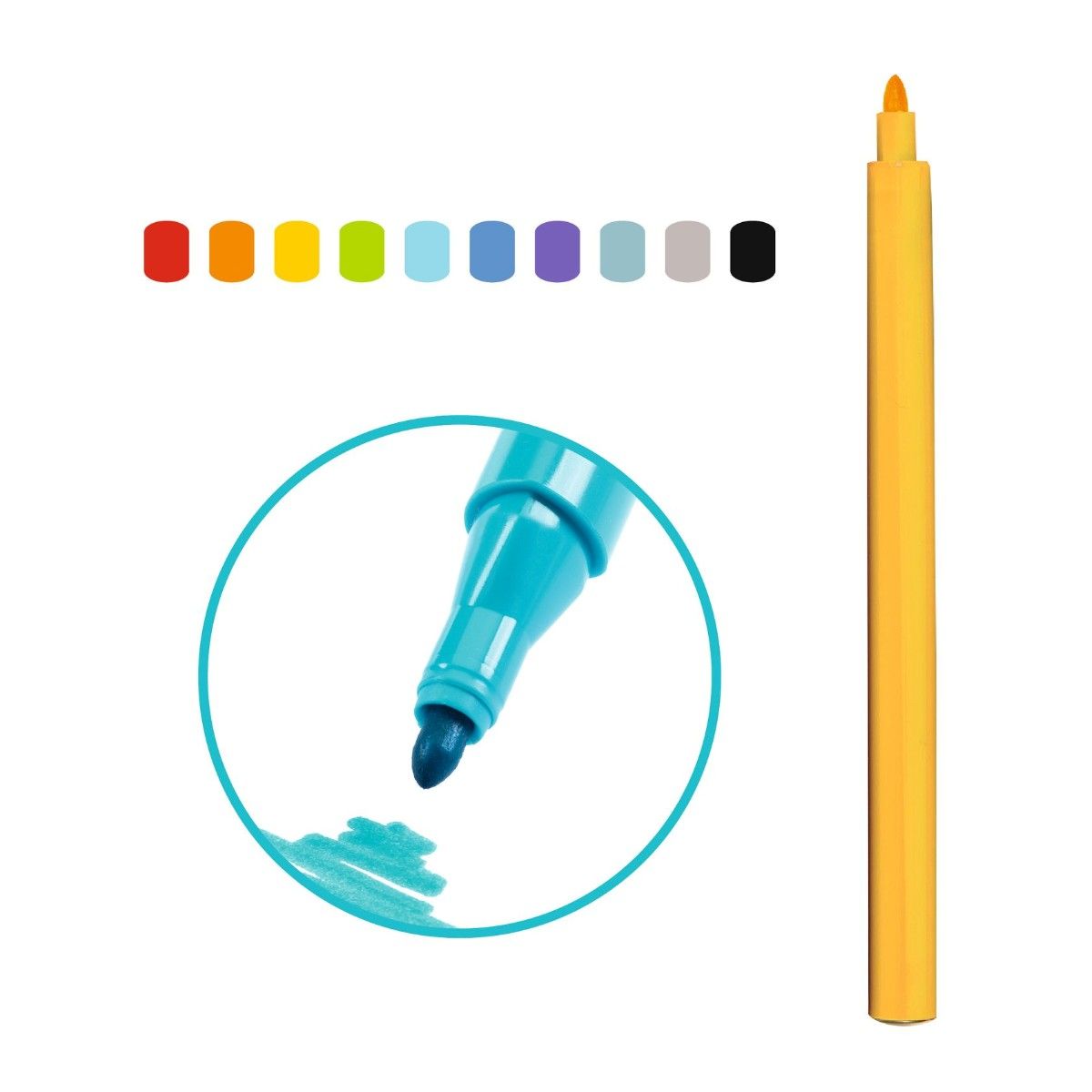 Tusserne fra Djeco har pigmenterede farver, der giver et flot, ensartet resultat, og den ergonomiske trekantede form ligger godt i hånden, også når kreativiteten tager over i længere tid. Kvaliteten er høj, og de er lavet til at blive brugt – igen og igen.